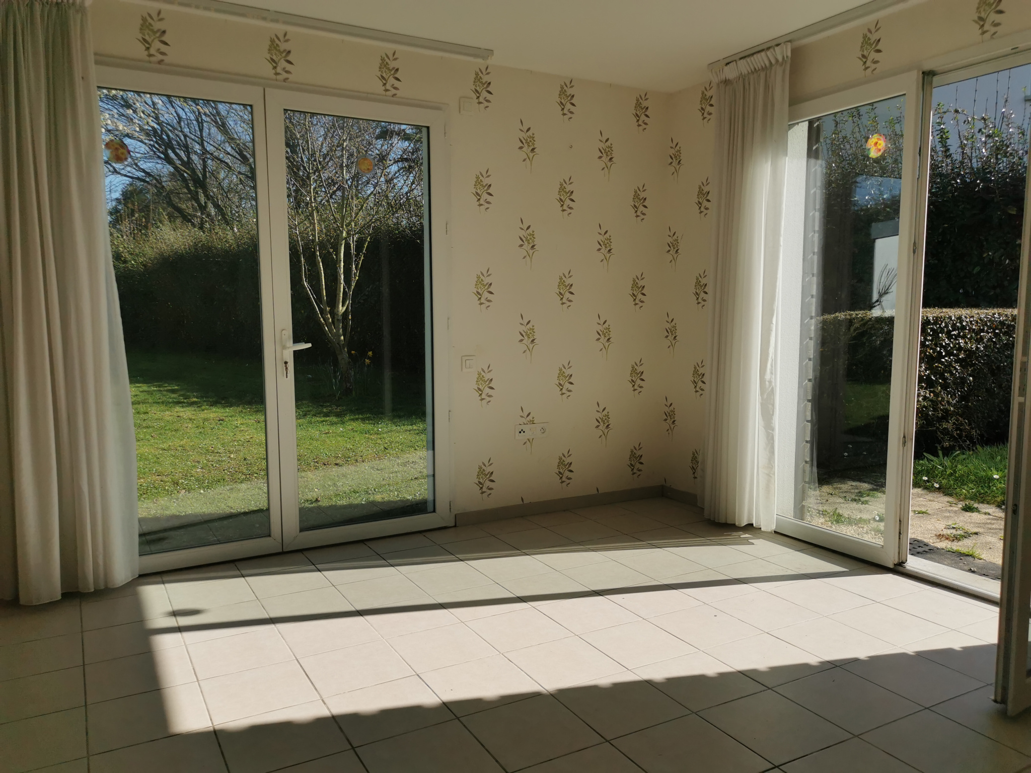 Séjour lumineux ouvrant sur un petit jardin privatif, parfait pour profiter des extérieurs
