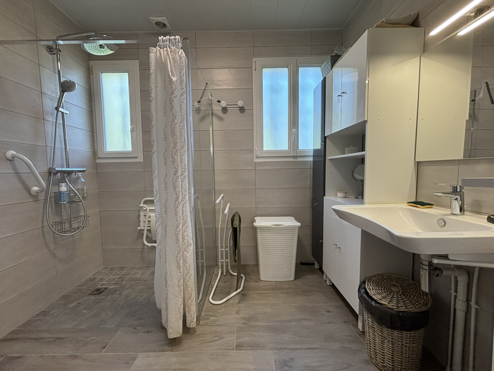 Deux chambres et une salle d’eau contemporaine avec douche à l’italienne (accès PMR) complètent ce niveau.
