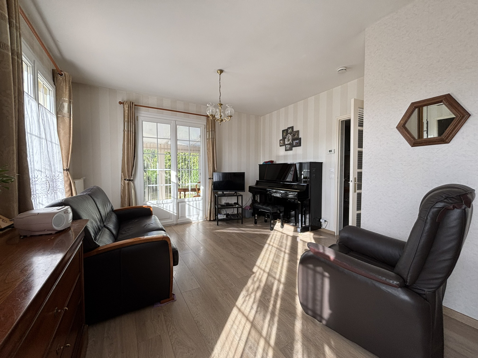 Au rez-de-chaussée, un séjour lumineux prolongé par une véranda baignée de lumière invite à la convivialité.