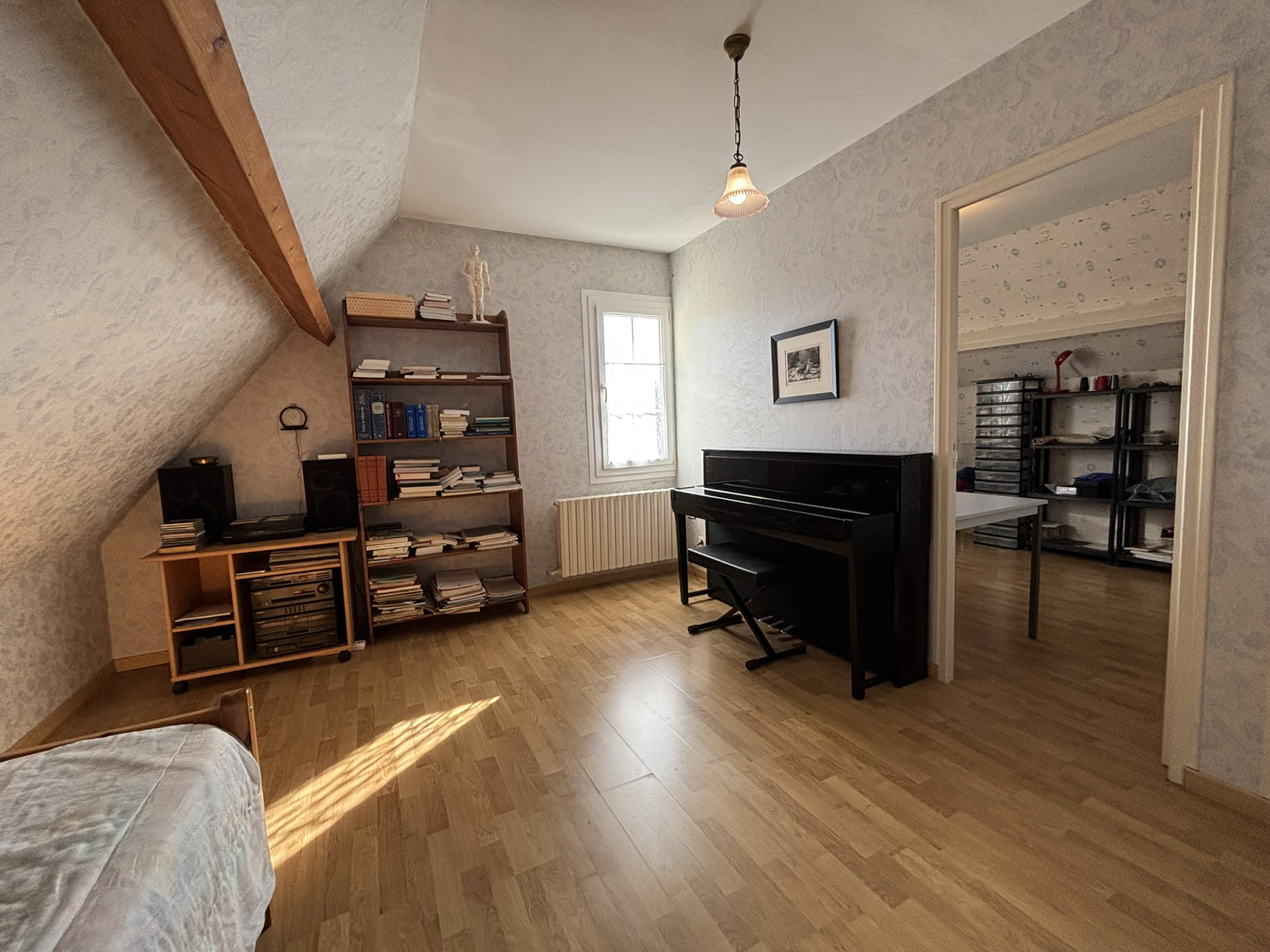 L’étage distribue quatre chambres supplémentaires, dont une traversante, ainsi qu’un cabinet de toilette, offrant à chacun son espace.