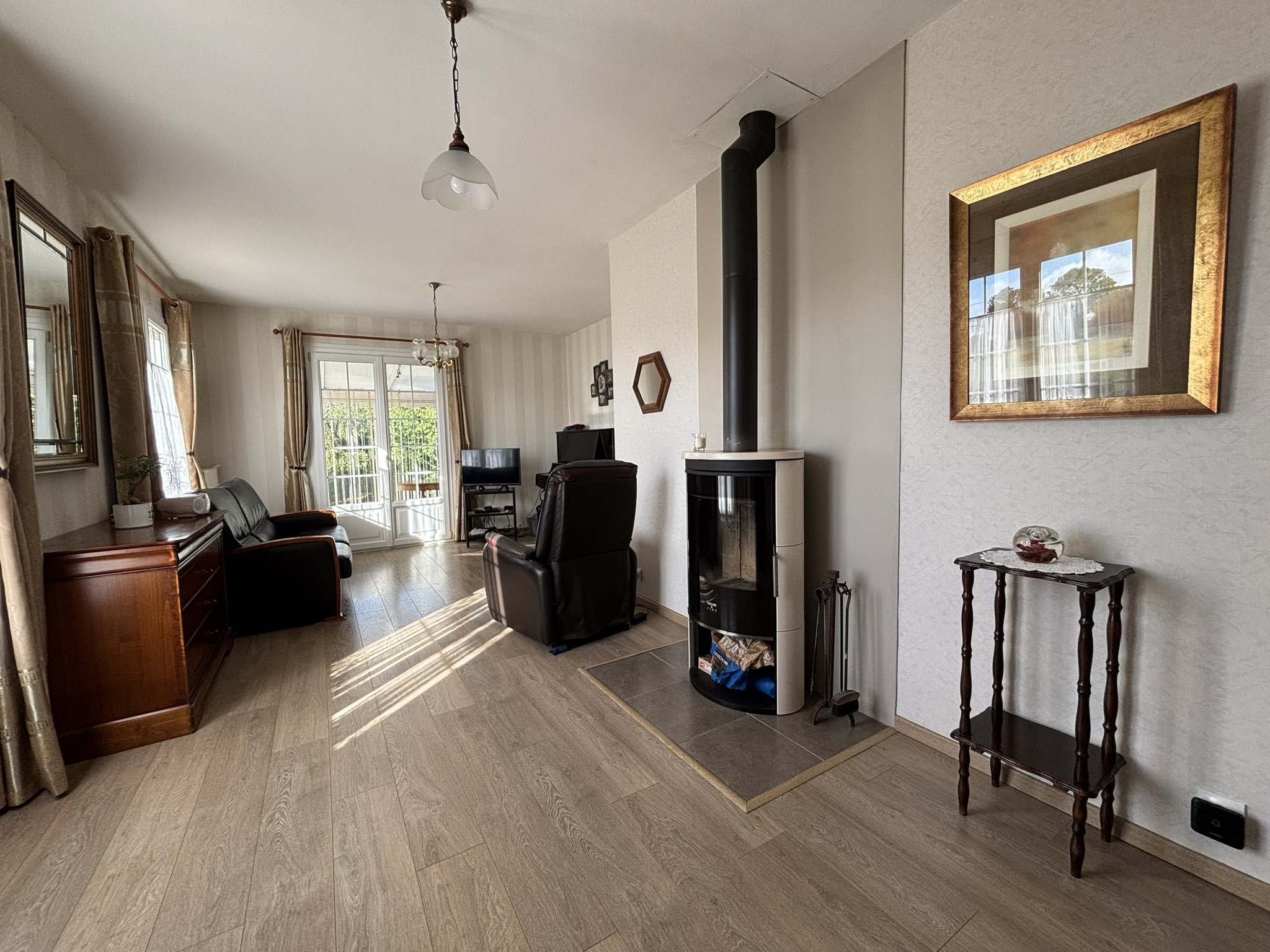 Les atouts ne manquent pas : pompe à chaleur, poêle à bois, double vitrage PVC, salle d’eau PMR récente… autant d’équipements qui rendent la maison confortable et économe.